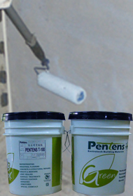 Pentens T-100 is a specially produced waterproofing compound for use on both internal and external surfaces. It will bond perfectly to almost any surface such as concrete, masonry, metal and timber. It may be applied to new or existing structures, and will bond to a damp surface. It can also be mixed with sand, to form a mortar of any desired consistency.