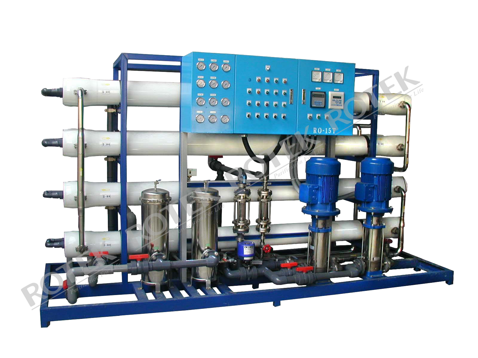 ROTEK RL series industrial reverse osmosis system is a durable piece of equipment which, with proper care and maintenance will last for many years. RL series RO systems are skid mounted with stainless steel frame, pre plumbed and pre wired allowing for quick installation and start up. Models are available with permeate outputs of between 3,000 and 50,000 litres/hr as shown in the specifications.