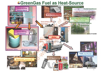 4.Full-use/No-residueGas-generators provided by Good-Willing will completely gasify the GreenGas_liquid-typed_material to gas-fuel without fuel residual, unlike the issue of 1 atm (one atmosphere) air-pressure of gas-residual in the traditional gas steel-cylinders.