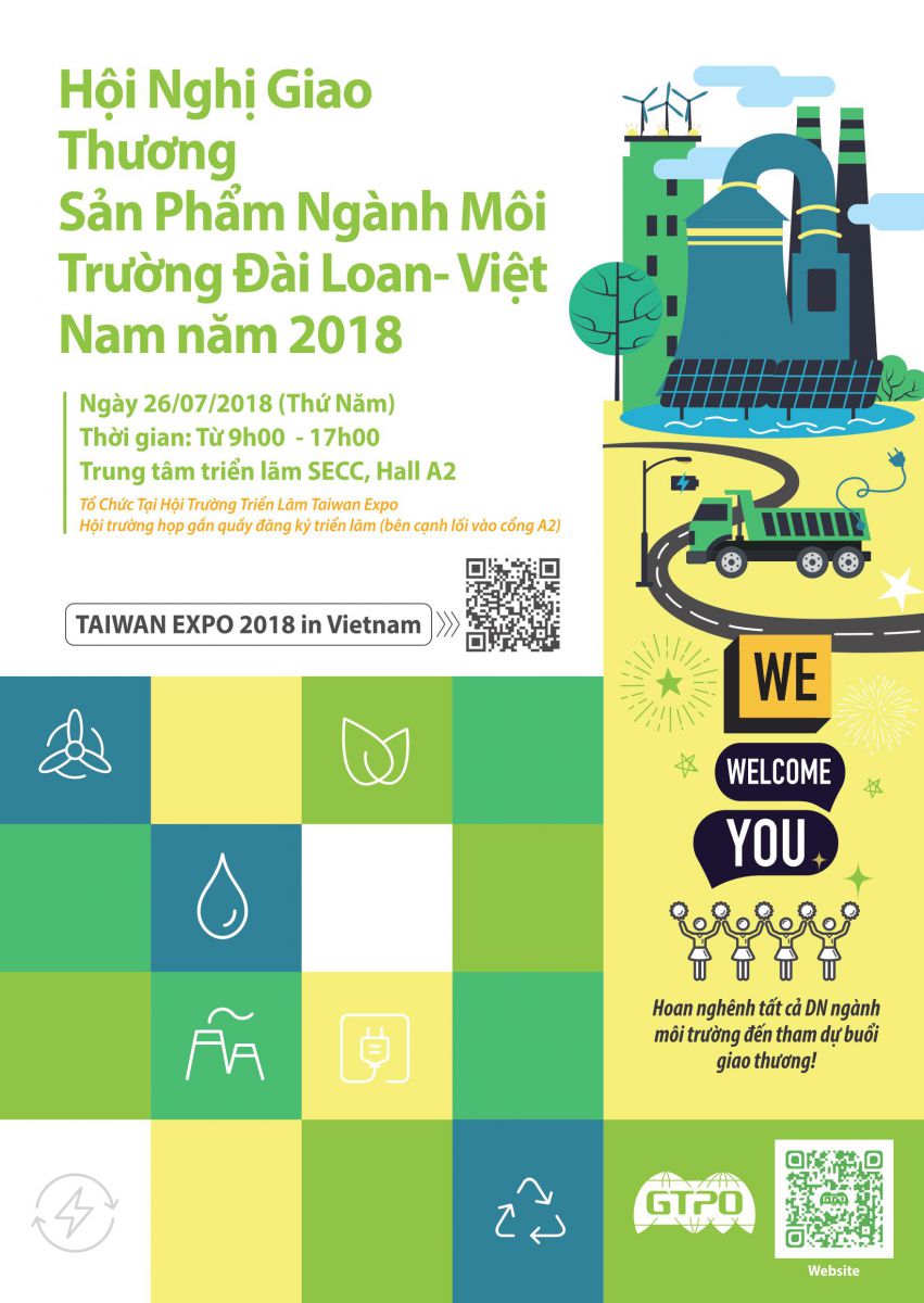 Green Trade Project Office (GTPO), supervised by Taiwan’s Ministry of Economic Affairs will organize the “Taiwan Green Products Pavilion” to showcase Taiwan's Green Products at the Taiwan Expo in Vietnam. Taking place from July 26-28, 2018 at Saigon Exhibition and Convention Center, Ho Chi Minh, the pavilion will be exhibiting products from 11 Taiwanese companies in three major categories according to Vietnam’s National Green Growth Strategy: 1) Reduction of greenhouse gas emissions and promotion of clean and renewable energy, 2) Greening production, 3) Greening lifestyle and promoting sustainable consumption. Taiwan wants to work and take part together with Vietnam in solving its environmental challenges, leading towards a green lifestyle.